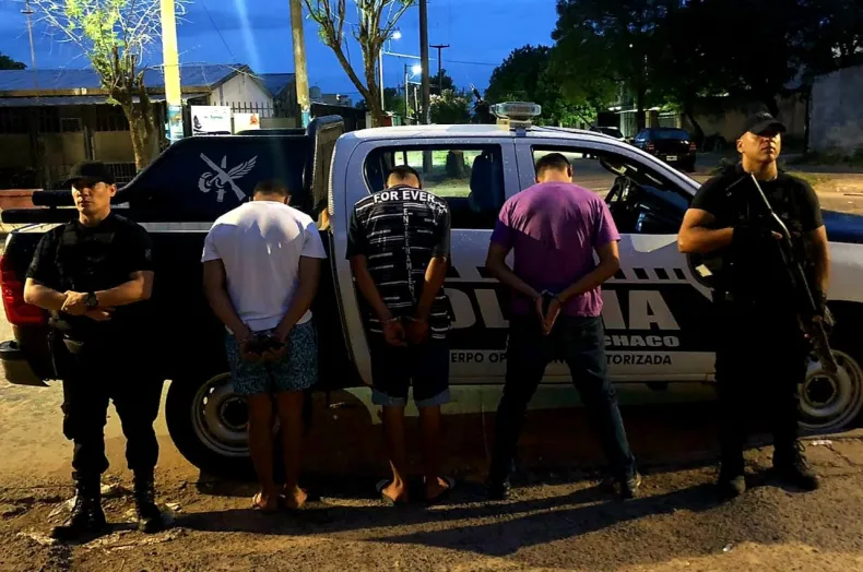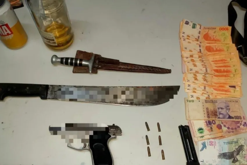 Se trata de tres hombres de 30 y 34 años, quienes se movilizaban en un auto Renault Symbol color gris, el cual fue secuestrado e inspeccionado por los efectivos policiales donde hallaron un arma de fuego, tipo pistola, marca Bersa, Modelo Thunder, calibre 22, almacén cargador con seis cartuchos, un cuchillo, un machete, tarjetas varias y la suma de $ 33.570 todos los elementos fueron incautados.