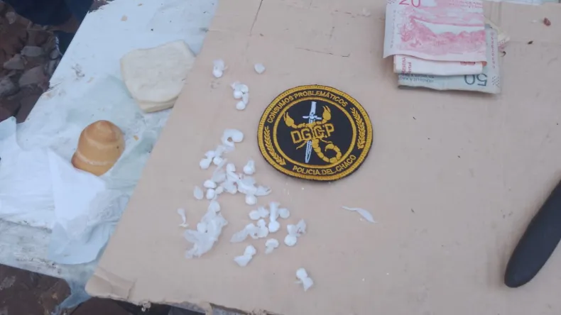 Los hombres en su poder tenían 30 envoltorios de polietileno tipo bochitas con una sustancia blanquecina, que atravesó tareas de campo, arrojó como resultado 7.9 gramos de cocaína. Las bochitas fueron secuestradas, como así también, un cuchillo, una balanza de precisión, dinero en efectivo y varios recortes de polietileno.