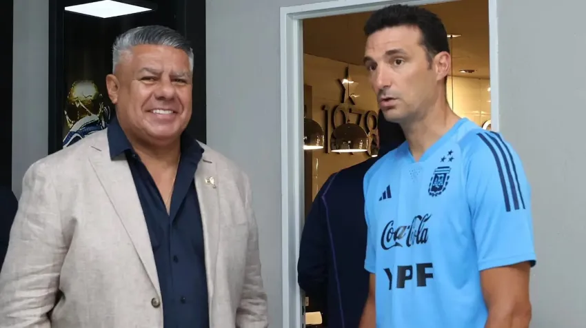 El director técnico del seleccionado albiceleste, Lionel Scaloni, y el presidente de la AFA, Claudio "Chiqui" Tapia, se reunieron esta tarde para definir la continuidad del autor de la "Scaloneta".