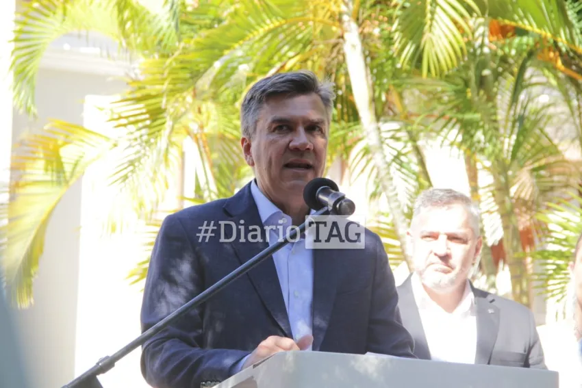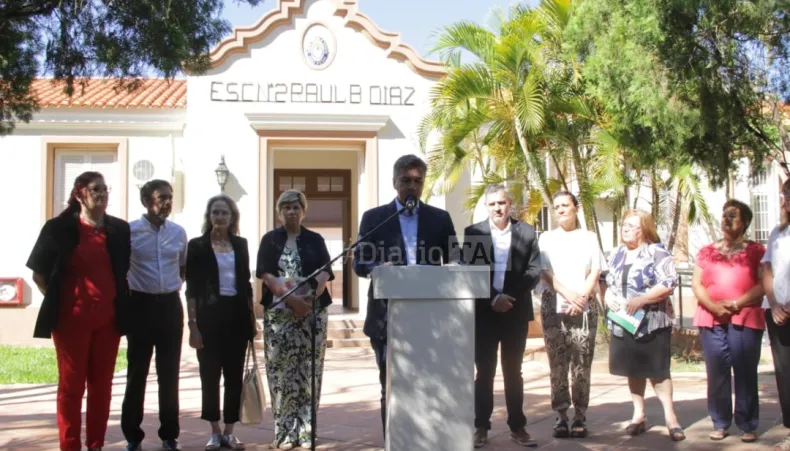 El acto fue realizado en la Escuela N°2 "Raúl B. Díaz", el gobernador estuvo acompañado por Sofía Naidenoff, la ministra de Educación; Alejandro Abraham, ministro de Hacienda y Finanzas y otros funcionarios.