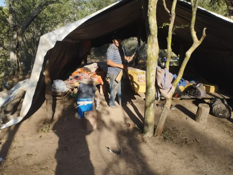 Luego, lograron descubrir una especie de campamento improvisado donde había cuatro hombres jornaleros acopiando postes quebracho colorado, todos ellos fueron identificados, como oriundos de Taco Pozo.