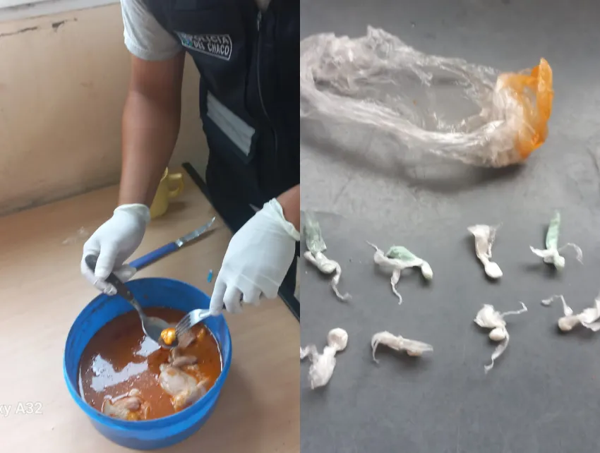 El personal de guardia en la División Microtráfico Metropolitana que es el encargado de recepcionar los alimentos que llegan para los detenidos, recibió un pote plástico que contenía un guiso, el cual tuvo que ser minuciosamente revisado.