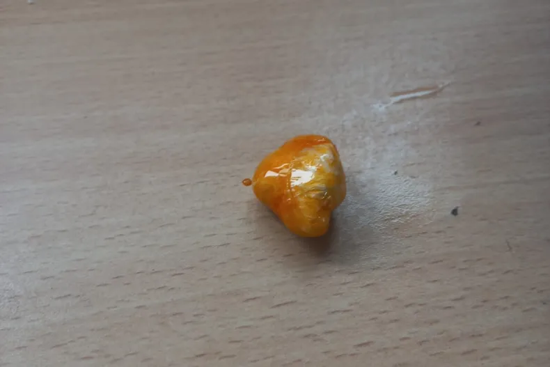 Allí quienes se desempeña como llavero fue quien detectó un envoltorio de nylon con forma redonda oculto dentro de la comida ahí dentro se descubrieron 8 dosis de cocaína cuyo peso total arrojó 2 gramos.