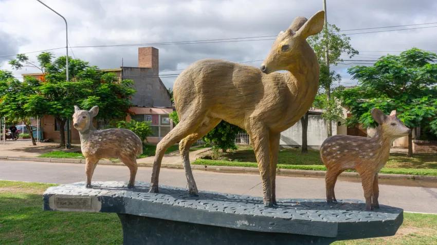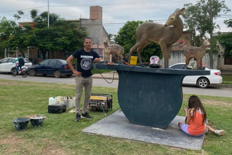 Luego de que se tomó conocimiento del daño causado a la escultura del guazuncho y sus crías, que se encuentra ubicada en avenida 33 entre 4 y 6 de la ciudad termal, el municipio saenzpeñense contactó al artista Rubén Darío Marcoff para que la reparara.