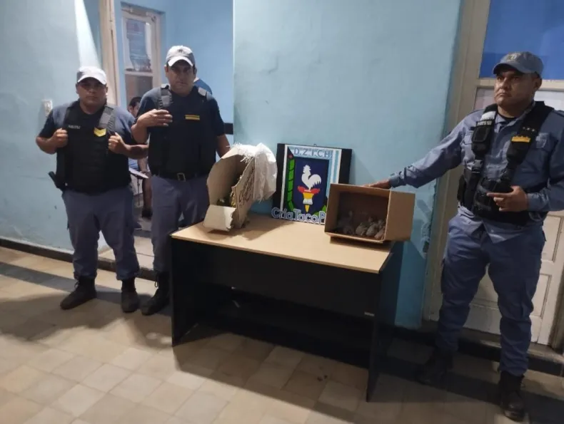 Los efectivos policiales constataron que estos ciudadanos transportaban varias aves de la especie loro hablador chaqueño (Amazona aestiva xanthopteryx), no tenían ninguna documentación legal que avale dicha actividad. Debido a ello se procedió formal secuestro del rodado y los animales. El conductor fue notificado de contravención según artículos 44º y 109º.