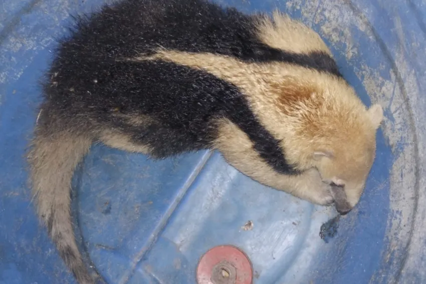 Se trata de la especie Tamandua tetradactyla, conocido como oso hormiguero amazónico, al cual los efectivos policiales pusieron en resguardo y lo llevaron a una unidad policial.