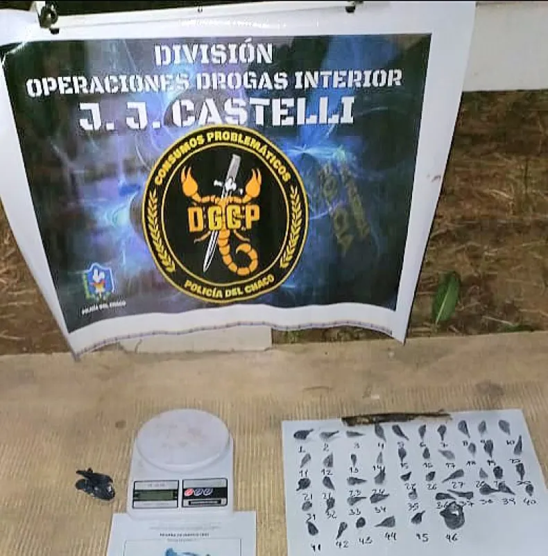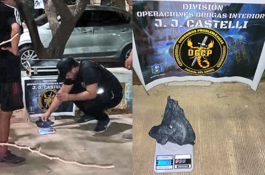 En la noche del lunes, un llamado anónimo alertó al personal policial de la División Operaciones Drogas sobre dos sujetos que vendían droga en la Plaza 3 de Octubre de la localidad de Juan José Castelli, y los efectivos frenaron el accionar de los "dealers".