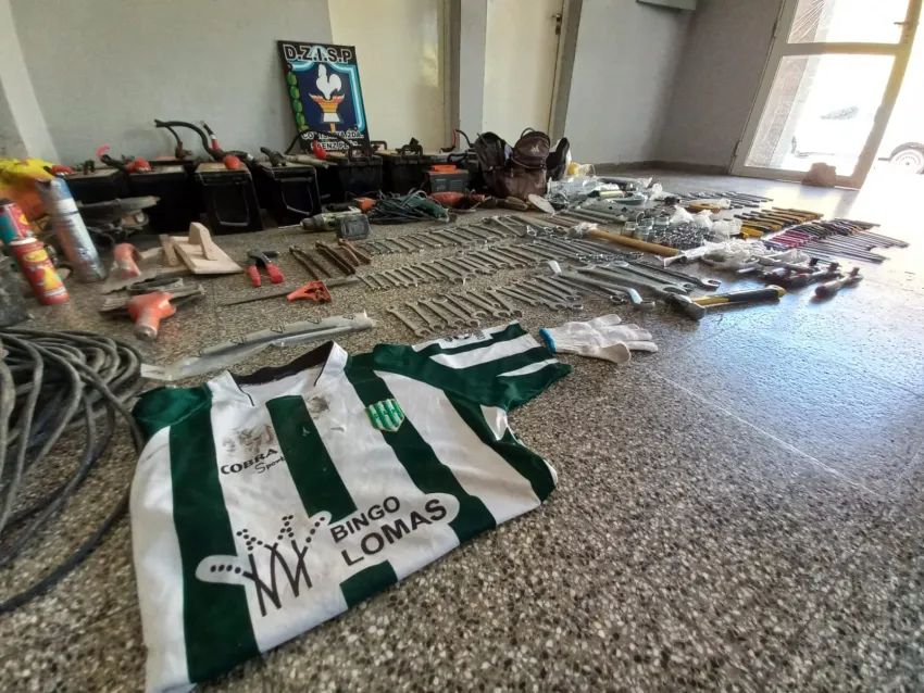 En las dos viviendas, la policía incautó un total de 15 baterías, nuevas y usadas, de distintas marcas y amperios; 6 llaves francesas de distintas pulgadas, 8 pinzas, 9 llaves L, 18 destornilladores, 3 criquets de fuerza para llave tubo, 2 barretas, 4 llaves de rueda, 2 martillos, 59 llaves de boca y estriada de distintas medidas, un soldador, 47 llaves tubo de distintas medidas, una caja de herramientas conteniendo herramientas varias y discos de corte. No se descarta que algunos de los elementos incautados, como taladros, alargues, amoladoras y discos de corte, podrían estar relacionados con otras causas que se investigan, especialmente en hechos recientes en obras en construcción.