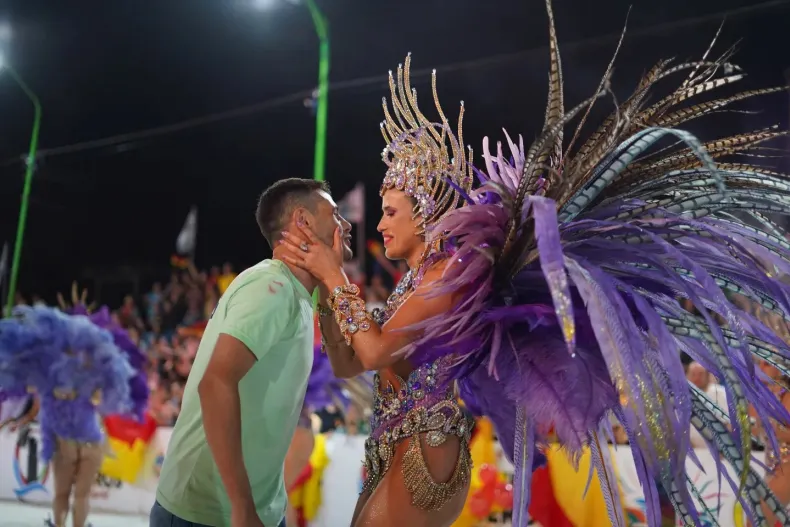 Mica Subasnabar, una joven que baila en la comparsa de Carun Bera en la localidad correntina de Monte Caseros, recibió la propuesta de matrimonio de su novio Sergio mientras realizaba una presentación.