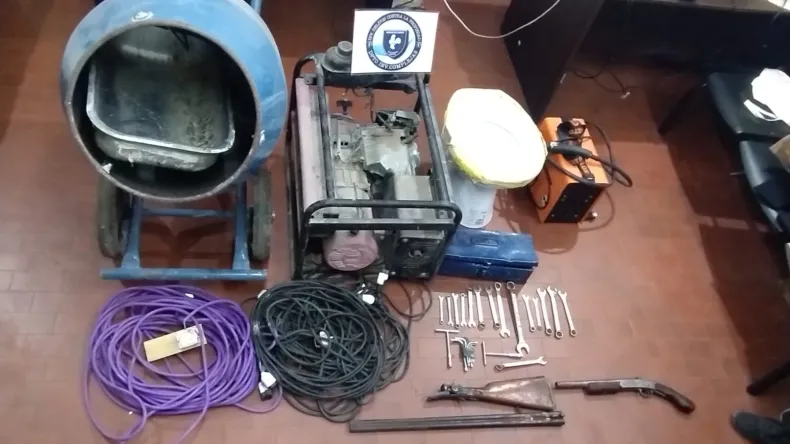 Los bienes sustraídos del taller mecánico una maquina cortadora de hierro sensitiva, una amoladora, una soldadora de alambre, una amoladora, una cortadora de madera, cinco taladros, varias pinzas y alicates, tres alargues, tres paquetes de cables tipo taller, una máquina de soldar, una escalera chica de 7 escalones, una caja de herramientas grande con ruedas, varias herramientas de mano, un inodoro; una bacha y una silla de oficina tipo ejecutiva y dos sillas materas de hierro, con tapizado camuflado.