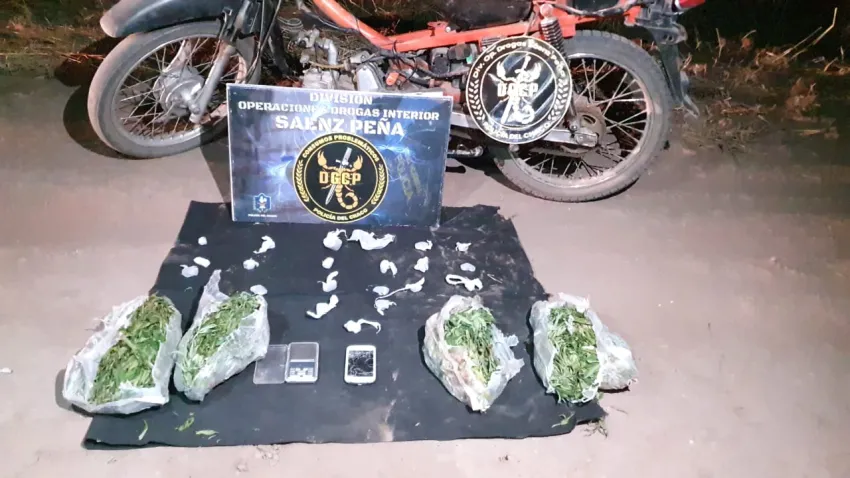 Seguidamente, procedieron al secuestro de una mochila, en su interior contenía 04 envoltorios con hojas de planta de la especie cannabis sativa y 21 envoltorios con una sustancia verde amarronada. Tras tareas de campo, arrojo como resultado 1948 gramos de Marihuana. También, incautaron una balanza de precisión, un celular y una Motomel 110 cilindradas.