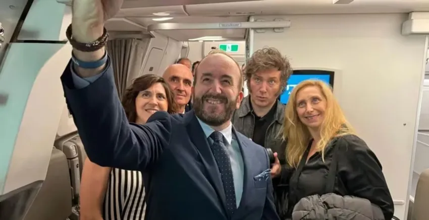 Acompañado por su hermana y secretaria General de la Presidencia, Karina Milei, así como la canciller Diana Mondino y el rabino Shimon Wahnish, embajador designado en Israel, el mandatario el presidente experimentó un emotivo inicio de viaje en un vuelo comercial de Alitalia, marcado por el respaldo de algunos pasajeros y el sonido de "Las Cuatro Estaciones" de Vivaldi.
