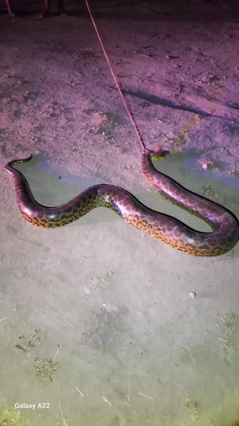 Ya en el sitio, el personal policial constató que se trataba de una Boa Curiyú (Eunectes Notaeus) de aproximadamente 4 metros, una víbora constructora no venenosa, de hábitos diurnos que habita en pantanos, lagunas, esteros y zonas húmedas.