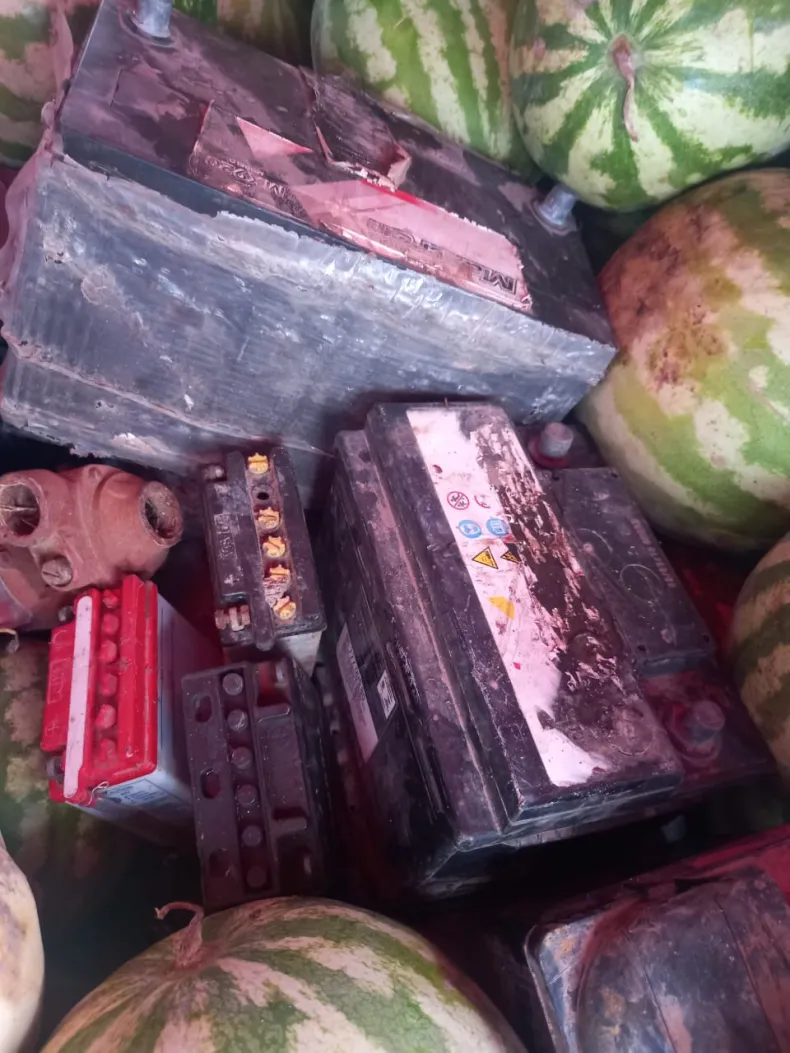 Además, mencionaron los uniformados como una circunstancia agravante, la existencia de en uno de los vehículos sandías y melones que son propias de consumo humano mezcladas entres las baterías.