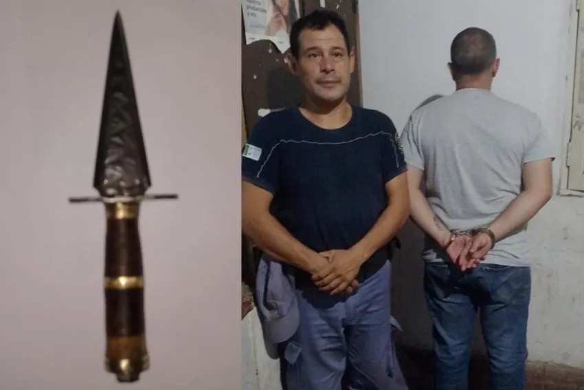Finalmente, con intervención del personal de la Comisaría local, en el lugar se procedió a la demora del agresor R. E. P. de 41 años de edad y al secuestro de la motocicleta blanca tipo Cross y el cuchillo de unos 15 cm. de hoja calada doble filo y mango de madera, que habría sido utilizada para consumar el hecho.