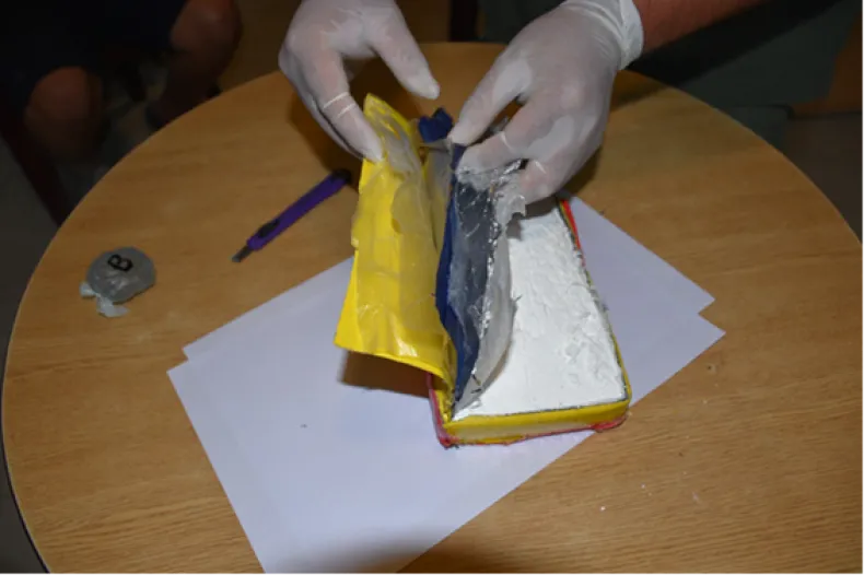 Lo hallado fue sometido a pruebas de campo por el personal de Criminalística y Estudios Forenses, obteniendo un resultado positivo para Clorhidrato de cocaína, con un peso total de 1 kilo 94 gramos, y cannabis sativa con un peso de 8 gramos.