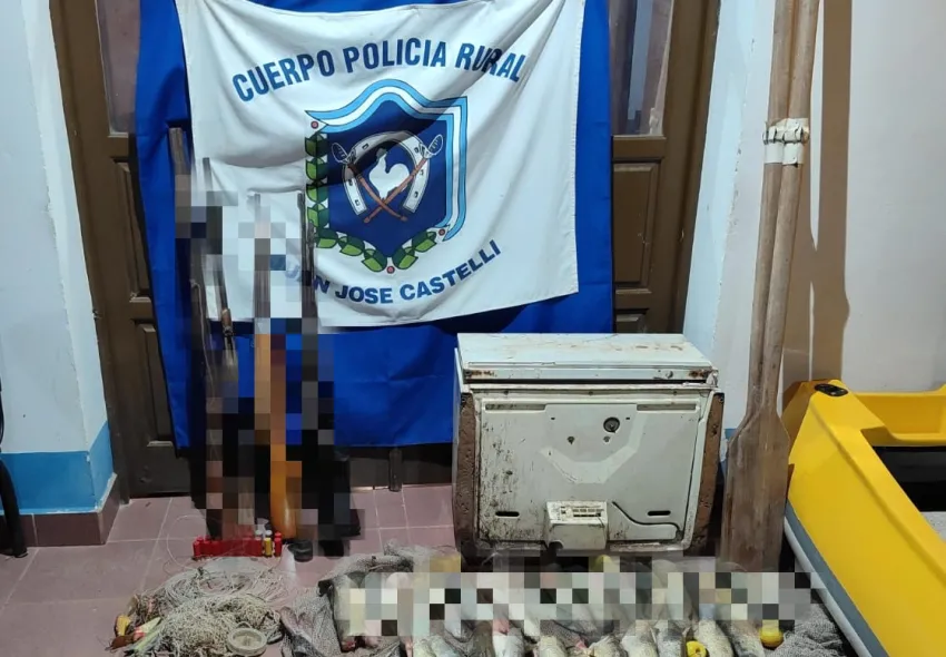 Dos personas que tenían en su poder cuatro armas de fuego sin la documentación correspondiente y un gran número de pescados fueron interceptadas por la Policía Rural de Castelli.