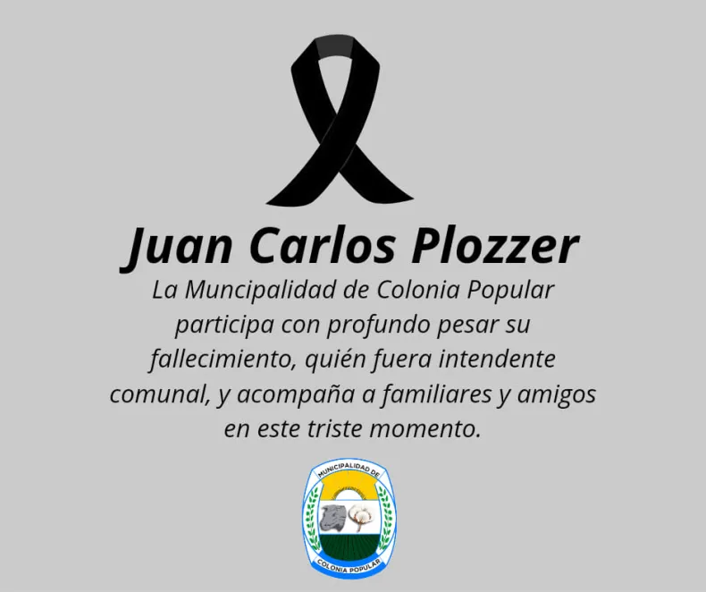 "La Municipalidad de Colonia Popular Participa con profundo pesar su fallecimiento, quien fuera intendente comunal, y acompaña a familiares y amigos en este triste momento", expresa la publicación.