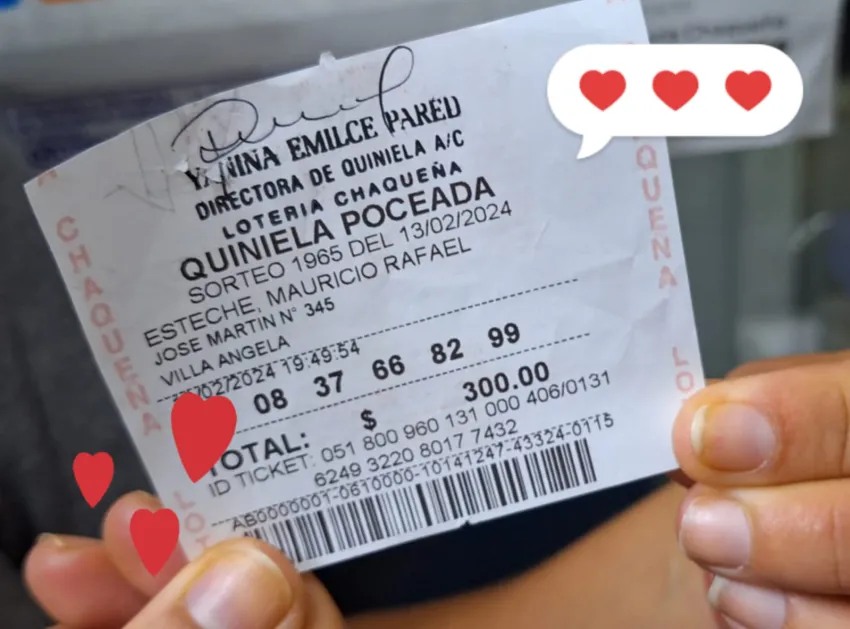 El golpe de suerte llegó con los números 08, 37, 66, 82 y 99 y se trató de una jugada automática "que habíamos jugado el sábado pasado", indicó la mujer, quien se acercó hasta la sede de Lotería Chaqueña junto a su pareja.