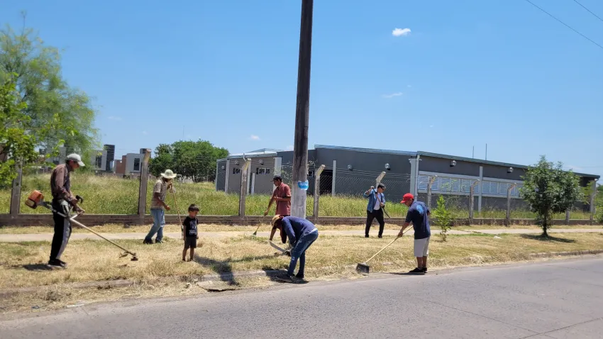 Esta vez hicieron el aporte en un sector de la vereda de la Unidad Educativa de Gestión Privada N° 16 " José Manuel Estrada" y algunos parterres de los alrededores sobre calle Capitán Giachino en el acceso al Barrio San Cayetano.