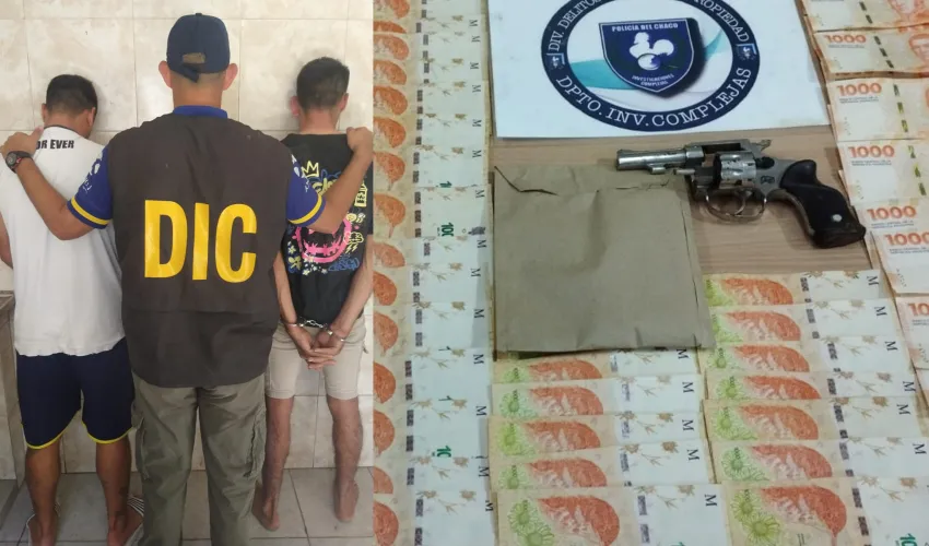 Ambos ladrones fueron detenidos con 100 mil pesos, un arma de fuego y un celular IPhone.