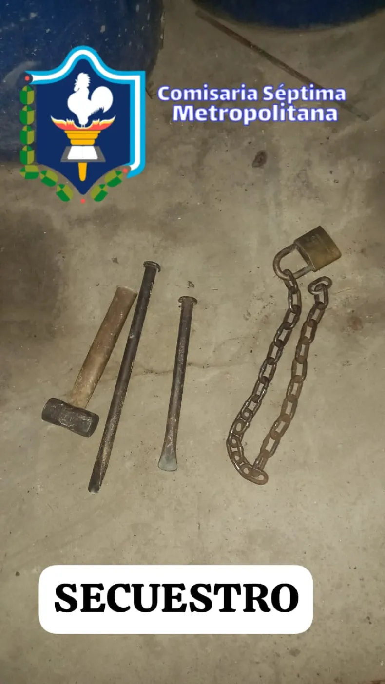 Ante esto, el personal policial labró un acta de constatación y procedió al secuestro de dos corta hierros, un martillo y una cadena con candado, que habían sido utilizados por los sospechosos para ingresar al predio. En tanto, se dejó presencia policial en el lugar para resguardar el galpón.