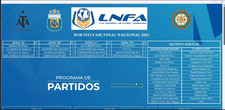 Los partidos iniciarán el 04 de marzo, y la competición finalizará el 10 con un nuevo campeón argentino de Futsal. En caso de que los chaqueños reciban la condecoración serán los primero en la liga saenzpeñense en conseguirlo.