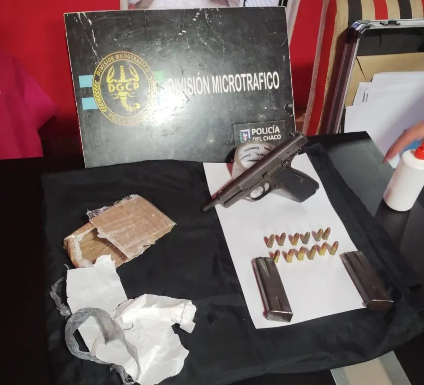 Además, se secuestró un arma de fuego tipo Pistola, calibre 9 milímetros, marca Browning, Serie N° 17-70022 sin pavonado, con dos almacenes cargador con 6 cartuchos mismo calibre cada uno, el cual registra pedido de secuestro activo de fecha 10/05/2019 a solicitud del Registro Provincial de Armas.