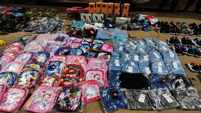 Como resultado, el personal policial halló gran cantidad de ropas, mochilas, zapatillas y elementos de bazar. Se trató de un total de 88 mochilas, 48 pares zapatillas, 40 remeras, 12 unidades de ropa interior, 12 gorras, seis calzas cortas y 112 jeans.