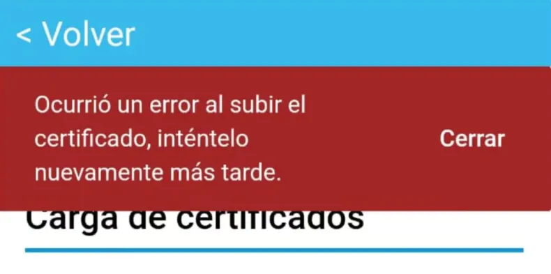 "La calidad de la imagen es insuficiente" y "ocurrió un error al subir el certificado" son los fallos que reciben los usuarios cuando intentan el último paso para finalizar el trámite.