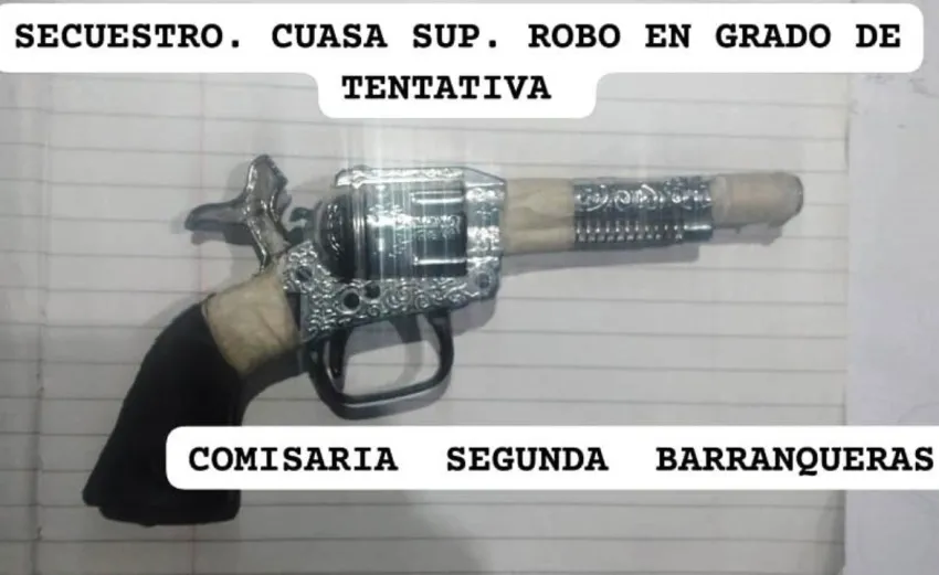 Entre las prendas de los sospechosos, los agentes encontraron el arma de juguete, similar a un revólver y procedieron al secuestro y a la conducción de los jóvenes a la dependencia policial.