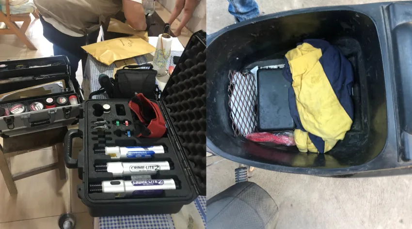 Las manchas biológicas fueron halladas en un pantalón y una remera escondida dentro de una motocicleta y fueron vistas a través de la luz ultravioleta