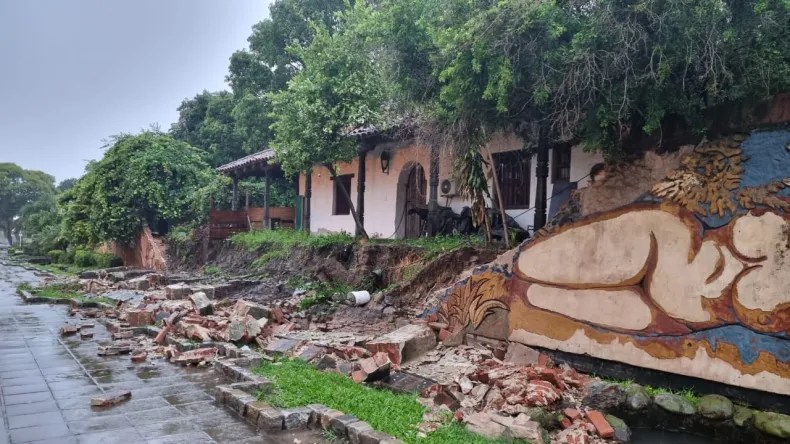Uno de los puntos más afectados del casco céntrico correntino fue sobre 9 de Julio y Roca, donde el agua llegó a tapar los vehículos estacionados en la calle. Por otro lado, las lluvias causaron el derrumbe de un histórico mural ubicado en la plaza Italia, a pocos metros del puerto correntino.