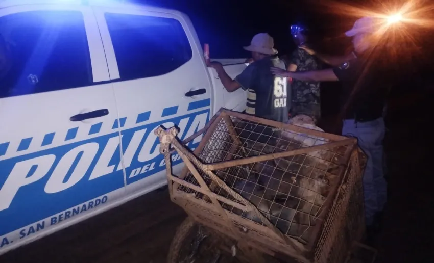 Todo ocurrió mientras los agentes patrullaban los barrios durante la noche del domingo, cuando observaron a dos sujetos saliendo del depósito municipal cargando bienes en un carro.