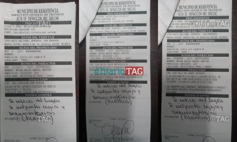 Finalmente, el resultado de esta discusión fue que el abogado se llevó seis infracciones: por desobediencia al silbato, falta de chapa patente, falta de documentación, falta de póliza de seguro, falta de casco y por circular por la vereda.