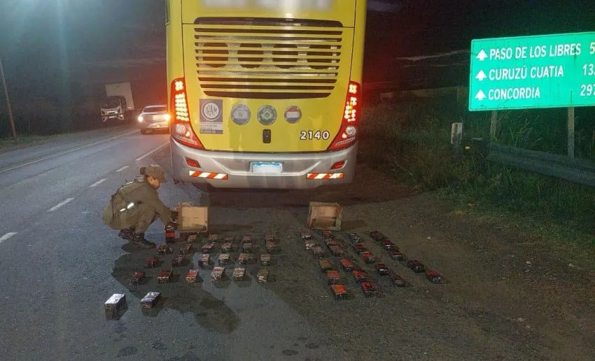 En el segundo operativo, gendarmes del Escuadrón 7 Paso de los Libres realizaron un control sobre Ruta Nacional Nº 14, interceptando un transporte de pasajeros de larga distancia.