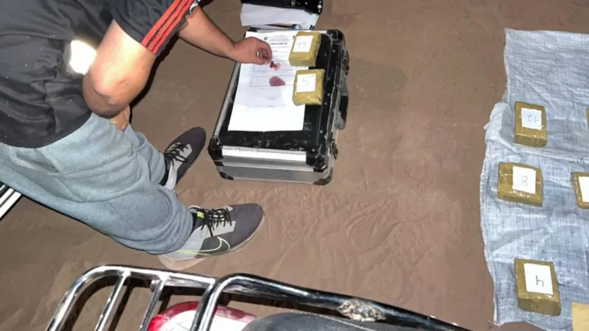 Tras la búsqueda, encontraron una motocicleta Honda Wave abandonada en un área de pastizales junto a una bolsa arpillera blanca. En el interior de la bolsa, se hallaron 15 paquetes rectangulares envueltos en cinta color ocre, que, al ser sometidos a pruebas químicas de campo, arrojaron positivo para marihuana, con un peso total de 3 kilos 816 gramos. Además, se encontró una bolsa de polietileno negro que contenía 15,6 gramos de cocaína.