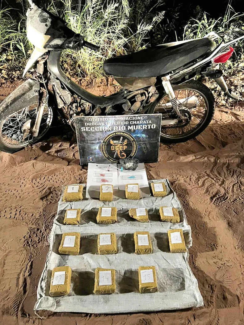 Durante un operativo de control realizado en la madrugada de este jueves por la División Operaciones Drogas Charata y el personal de la Sección Río Muerto en la intersección de la Ruta Provincial N°82 y el camino Rural Manetti, cerca de la estancia Caranda, los agentes observaron una luz que provenía de una motocicleta que se aproximaba al puesto policial.