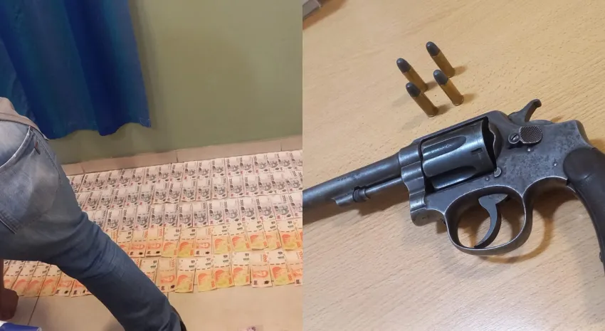Los efectivos policiales procedieron a secuestrar una mochila azul que contenia $ 4.580, una gorra y una camiseta de futbol. Tiempo después lograron apresar al joven de 19 años que tenía en su poder $ 423.100, el arma de fuego y sus cartuchos correspondientes. Luego, la fiscalía de turno dispuso la aprehensión por supuesto hurto con escalamiento.