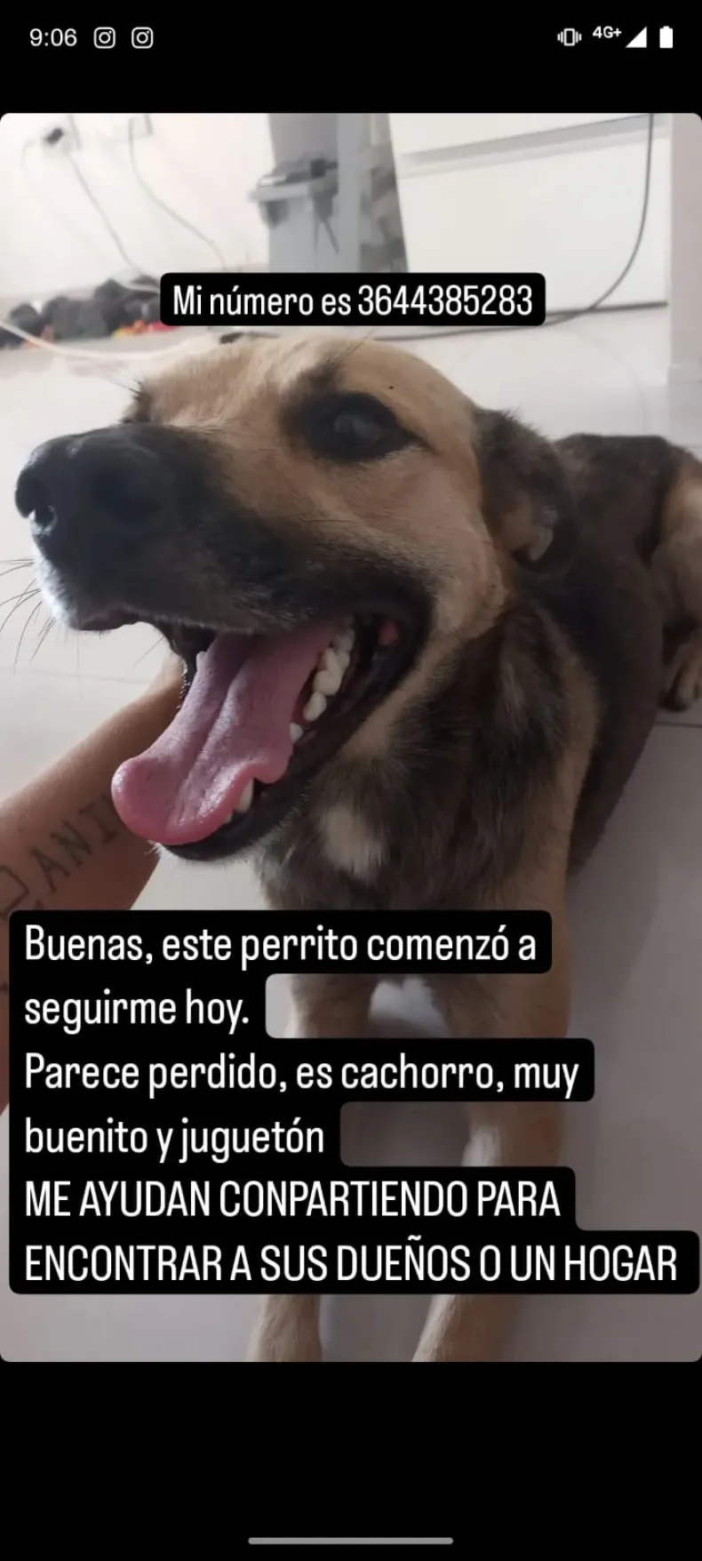 La joven además detalló que el can "es cachorro, muy buenito y juguetón" y por ello pide ayuda para encontrar a sus dueños o un hogar.