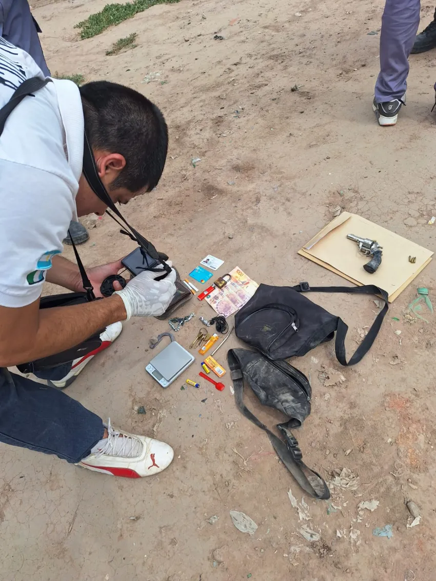 Los agentes de la Comisaria Segunda de dicha localidad recibieron llamados de los vecinos denunciando el hecho. Tras una recorrida, detuvieron a los hombres que tenían un revolver calibre 22, con una vaina servida y tres cartuchos colocados. También, transportaban dos riñoneras con 1.300 pesos, una balanza de precisión y otros elementos.