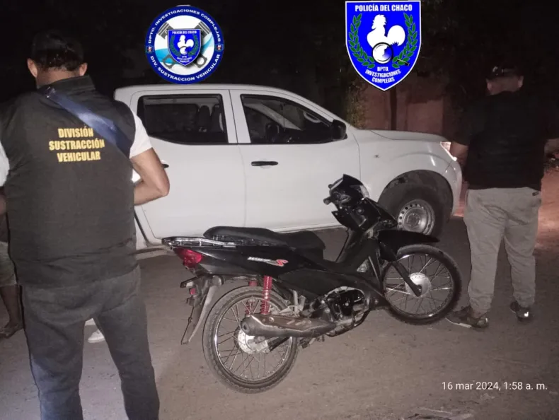 En la madrugada de este sábado efectivos policiales de Investigaciones Complejas y Sustracción Vehicular realizaron un operativo de Prevención e identificación de personas y moto vehículos en distintos puntos de la ciudad de Resistencia. De esa manera lograron incautar dos motocicletas con pedido de secuestro activo y la detención de tres personas.