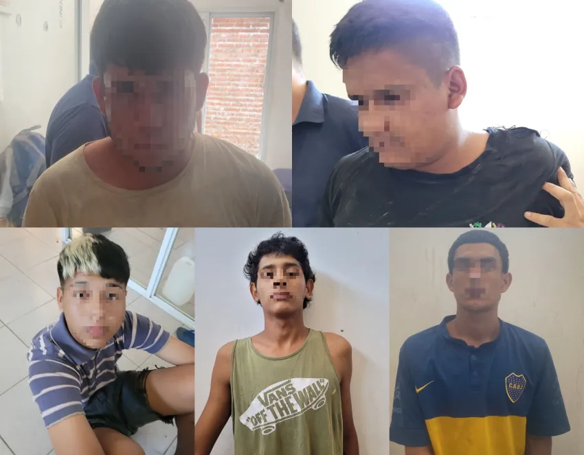 Los aprehendidos son cinco jóvenes, entre ellos un menor de edad de 17 años identificado como L.R.G. Además, L.R.R. de 19 años domiciliado en el barrio San Pablo de Fontana, V.G.A., de 21 años, domiciliado en el Lote Rural 126 barrio Mapic, O.M.A. de 19 años, también del barrio Mapic y R.M. de 24 años.
