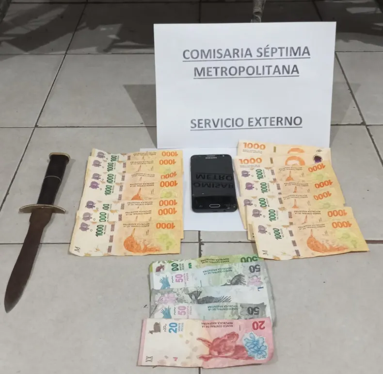 En ese momento, además, realizaron una palpación sobre sus prendas de vestir y en su poder hallaron un cuchillo y el celular sustraído. Se verificó las numeraciones de la motocicleta Honda Wave y descubrieron que era buscada por la causa "Supuesta Hurto" a solicitud de la Comisaría de Puerto Vilelas. Procedieron al secuestro de todo lo hallado, como así también la suma de $ 14.670 pesos.