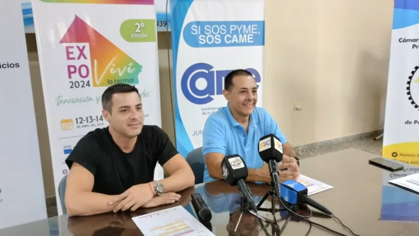 En la Cámara de Comercio de Sáenz Peña se realizó una conferencia de prensa para anunciar los espectáculos musicales que el público podrá disfrutar en la II Expo Viví La Termal, que se realizará del 12 al 14 de abril en el predio del Centro Cívico y Cultural de Sáenz Peña, ubicado en el barrio Monseñor de Carlo.
