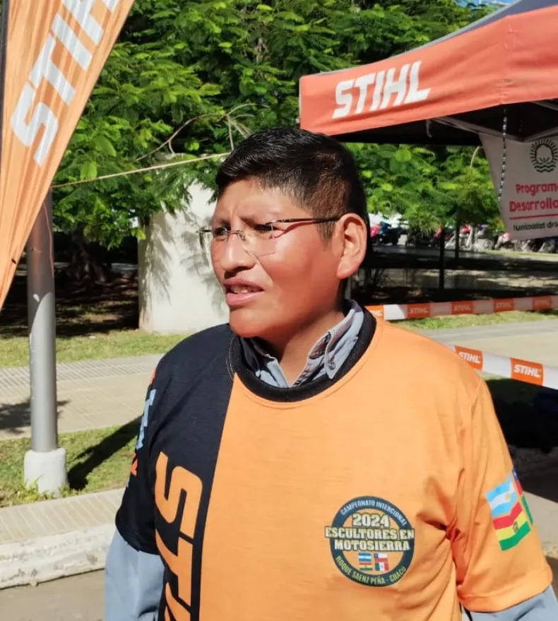 Rubén Mamani es de Bolivia y llegó a Sáenz Peña para participar del Campeonato Internacional de Escultores.