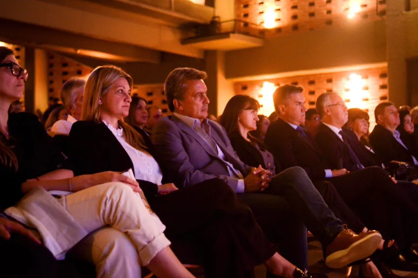 Desde el Salón Auditorio de la Casa de las Culturas, acompañado por la vicegobernadora, Silvana Scheneider, el gobernador destacó la presencia del autor en la provincia, a pocos días del 24 de marzo. "Fecha trascendental para nuestro sistema democrático y fundamentalmente para la defensa de los derechos humanos en su total magnitud", dijo.