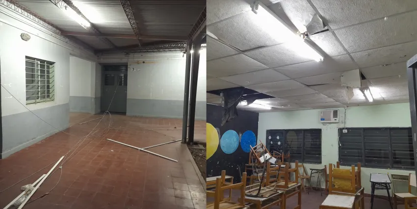 La Institución que queda ubicado sobre la calle Misionero Klein y López Vicuña en la esquina del Polideportivo Jaime Zapata sufrieron el décimo robo en un año. "Una vez más ingresaron y robaron 4 ventiladores de techo y destrozaron cables", escribieron a la redacción de este medio.