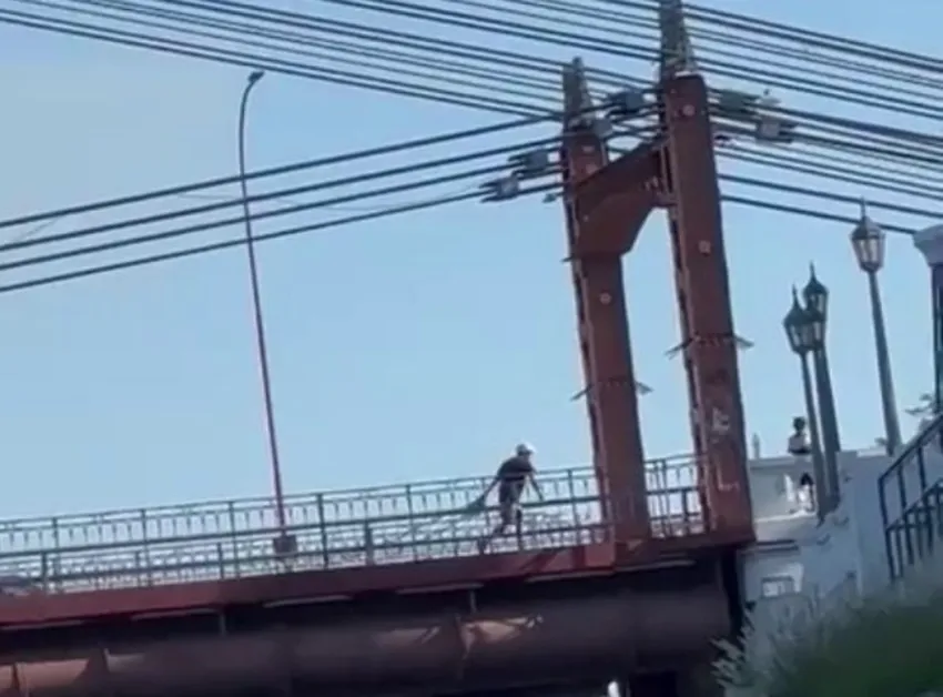 Un hombre fue filmado mientras robaba 40 metros de cables de un puente colgante en la Capital de Santa Fe.
