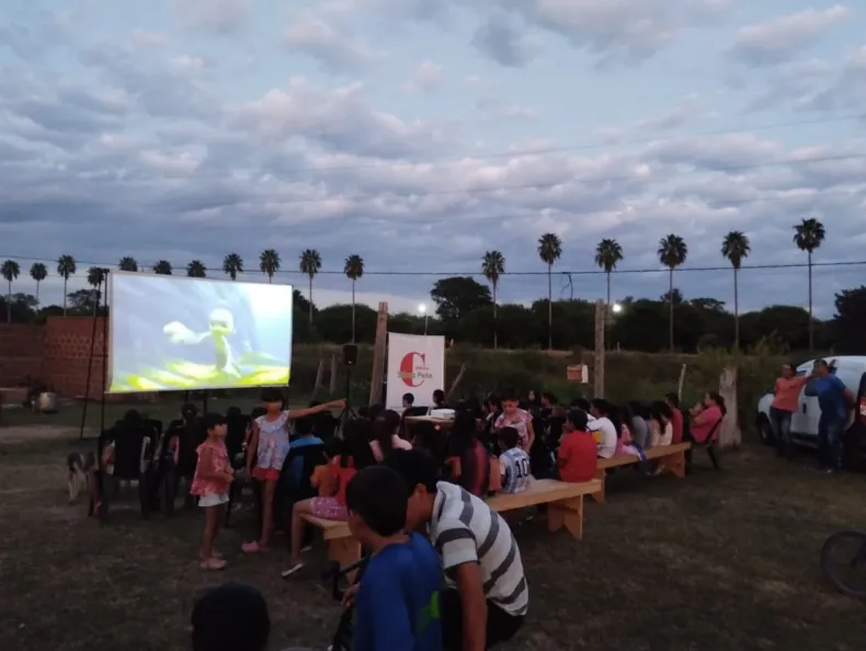 En la tarde del miércoles, Cultura llevó el cine bajo las estrellas al comedor y merendero "Los Peques" del barrio San Cayetano de Sáenz Peña.